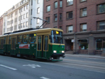 ヘルシンキ市内を走るトラム。市内を巡るには大変便利で2ユーロくらい