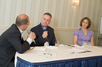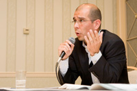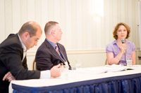 講師には、FEW(Foreign Executive Women)代表のジュリア・マエダさん、ダーボ ン・オーガニック・ジャパン代表取締役社長のホアン・パブロ・カンポスさん、ファシリテーターとしてエコサート・キュー・エー・アイ・ジャパン社長のドナルド・ノーディングさんを迎え、それぞれプロフィールと来日のきっかけ、そして今日までの長期にわたる日本滞在の経緯などを、詳しく教えてくれました。
