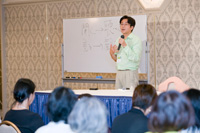 質疑応答では、「どういう動きが、右脳や左脳にいいのか」「自分がHappyでなければ相手をHappyにすることはできないということは分かったが、自分の中には相手がHappyでないことを喜ぶ気持ちもある。そうした悪い気持ちなどを抑えることができないか」といった今日のワークショップで行ったことを、日常の中で具体的に活用する方法について、質問がありました。