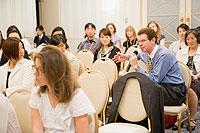 そんな中「企業がもっと責任を持ち女性を活用していくべき」との意見が。一方で、結婚して家庭を持つと、以前より仕事に集中しなくなるなど「女性側にも問題はある」とチェさん。また、参加者からは「ワーク・ライフ・バランスを考え、現状を維持して働きたいという女性もいる」という意見があり、それについてほかの参加者から「それは妥協では」と発言があるなど、熱のこもったやり取りも。最後に、講師の方々からメンターについて、微笑ましい思い出話を交えながらお話しいただき、セッションは終了しました。
