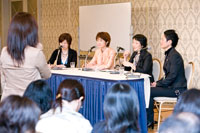 国際女性ビジネス会議は、午後、14の分科会が2つのセッションに分かれます。第1セッションで行われた「30代のキャリア&ライフを考える」に対し、40代を対象としたこの分科会のタイトルには、「役職者」という言葉が加わりました。30代は、さまざまなプロジェクトのリーダーとして活躍する時期ですが、40代になると、そこにさらに総合的な責任や役割が加わってきます。