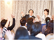 約20年間のマッキンゼー勤務の後、早稲田大学大学院ファイナンス研究科で教鞭をとる川本裕子さん。ヤマハ発動機ほか、多くの上場企業の社外役員や、金融審議会委員も兼任。「子どもたちが社会で生きていくにあたり、良い社会にしたいから今の仕事をしている」と、母親の顔をのぞかせ、優しく力強く話しました。今後の政府のあり方、政権交代の考え方も明確。また現在、国民の1票に格差があるために、経済対策に歪みが出ている。これを是正するための「一人一票実現国民会議」が展開されていること。もし現在の一票のあり方が不平等だと考えるなら、衆議院選挙と同時におこなわれる「最高裁判所裁判官 国民審査」で、1票の格差を肯定している裁判官に×をつける方法があることなどを紹介。具体的なお話に、参加者の真剣味はますます高まる様子です。