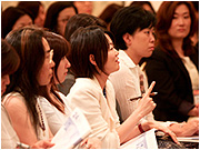 渡辺敦美編集長毎年ヒット商品のランキングをする「日経トレンディ」。渡辺敦美編集長は、いわばヒット商品を評価するプロでもあります。最近とバブル崩壊直後の時代のヒット商品を比較・説明しながら、その特徴を鋭く分析。「いかに周囲を巻き込んでいくか?」「こんな時代にどんな発想が必要か?」などスピーカーの意見や開発秘話を引き出します。「ヒット商品とは、どんな時代であれ常に常識破りである」「キーワードは“愛してる”こと」など、わかりやすく印象的なコメントで盛り上がったセッションをしめくくってくれました。