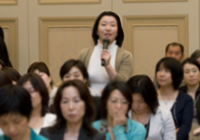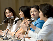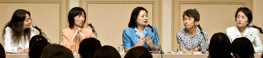 日本女子大学教授であり、現在、「ワーク・ライフ・バランス」をテーマに研究を続けている大沢真知子氏をファシリテータに、日産自動車のダイバーシティディベロップメントオフィス室長の吉丸由紀子氏、東京電力のダイバーシティ推進室長の雨宮弘子氏を講師としたこの分科会。なんとそこに、当日、会場にいらっしゃっていたダイエーの林文子氏と、昨年、「世界級キャリアの作り方」と題して特別講演をしていただいた一橋大学大学院の石倉洋子氏が飛び入り参加で加わりました。