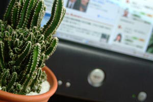電磁波を吸収してくれるというサボテンをパソコンのそばに置いています。サボテンの効き目か、それともそばに植物があることのいやし効果か、以前より快適に作業してます。