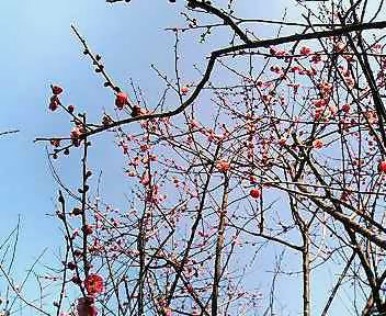 お花リポート。自宅近くの公園にて。梅の開花状況です。ほのかな梅の香りが春を予感させます。まだ寒さはあるけれど街中の公園を歩くのが楽しみな季節です。