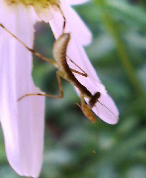 日曜日に、実家の庭にいた小指ほどの大きさの、赤ちゃんカマキリを発見。今日と明日は台風が接近しますが、元気でいるか心配です。