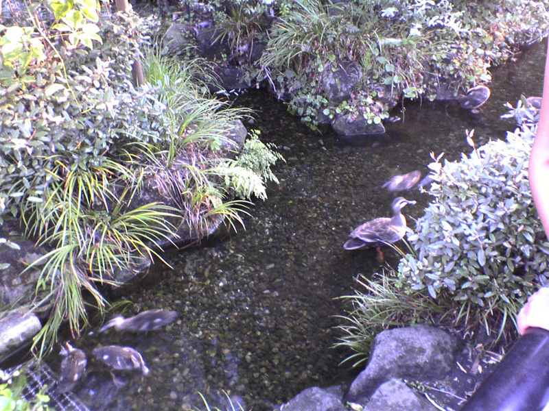 世田谷区池尻の川沿いの緑道に住む、カモの親子です。かなり子ガモも成長しているのがわかります。この水は、下水を浄化して再利用しているのだそうです。多くの人が足を止め、カモの親子を見守っていました。