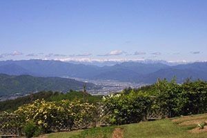 ▲ヴィラデストのガーデンから見える北アルプスの連山