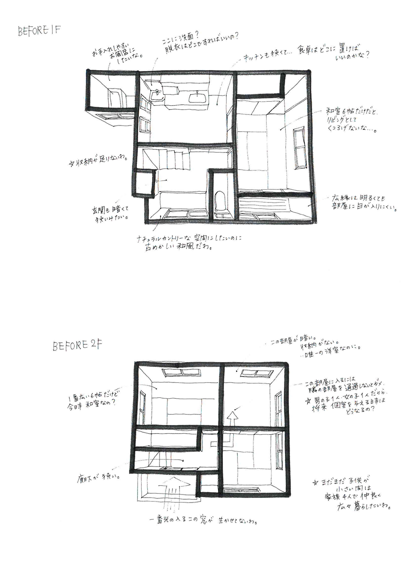 中古物件を購入して増築したリフォーム例です。もともとの間取りは、奥様が「涙目」になるくらいニーズに合ってないものでした。まさに「暗い、狭い、使いづらい」の三拍子セット!