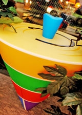これはぼくが作ったんだけれど、本当はピラミッドを作る案が委員会から出たんですよ。でも、ぼくはね、なんで大事なものは上にあるんだよ、だから逆さにしようよ、って言ったんです。